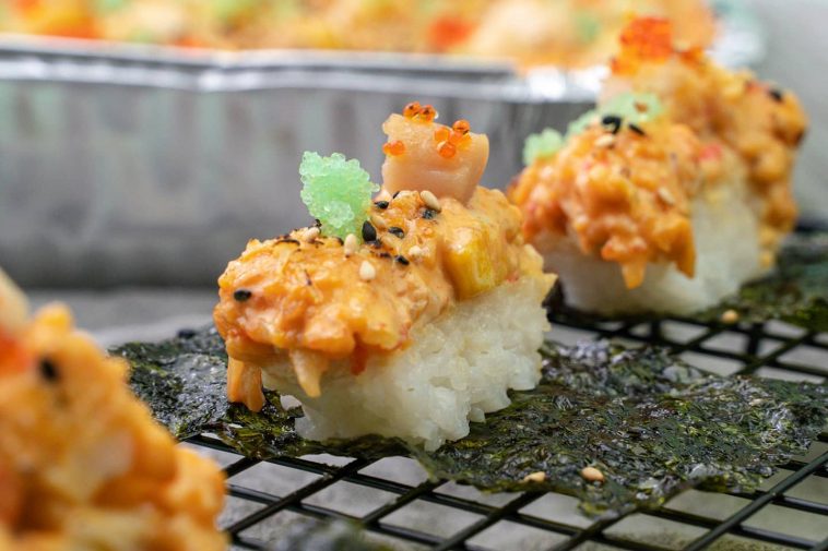 Although the baked sushi trend rose during quarantine, early food blogs in 2011 have actually called it “sushi casserole,” but it did not make that much of a buzz. Nowadays, many stores have even tried different variations of the baked sushi, with some adding cream cheese, mango, or other toppings. They are usually served in small or large trays, good for around 2 or 3 people for small trays, and feeding as much as 10 people for the large ones! If you’re craving for some baked sushi right now, here is a list of some online stores offering baked sushi for pick-up and delivery around Metro Manila!