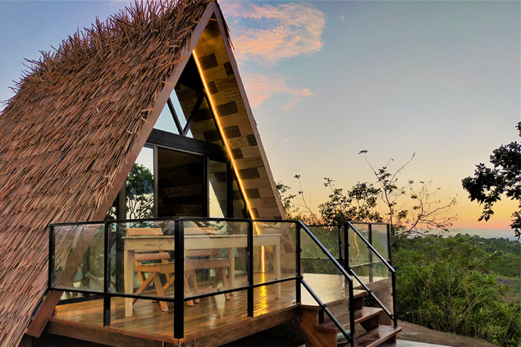 This triangle-shaped cabin comes with a loft and floor-to-ceiling glass walls for admiring the Sierra Madre Mountain Range.