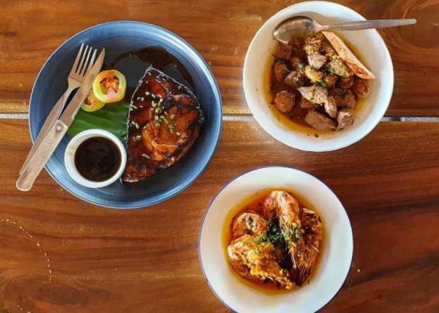 The result? An airy, light-filled respite that’s perfect for capping off the day. And with Kabsat’s prime location on San Juan’s North Shore, guests are treated to a truly unparalleled sundown experience. During happy hour, diners can be found drinking cocktails or beers by the gorgeous seafront deck, complete with wooden tables and loungers.